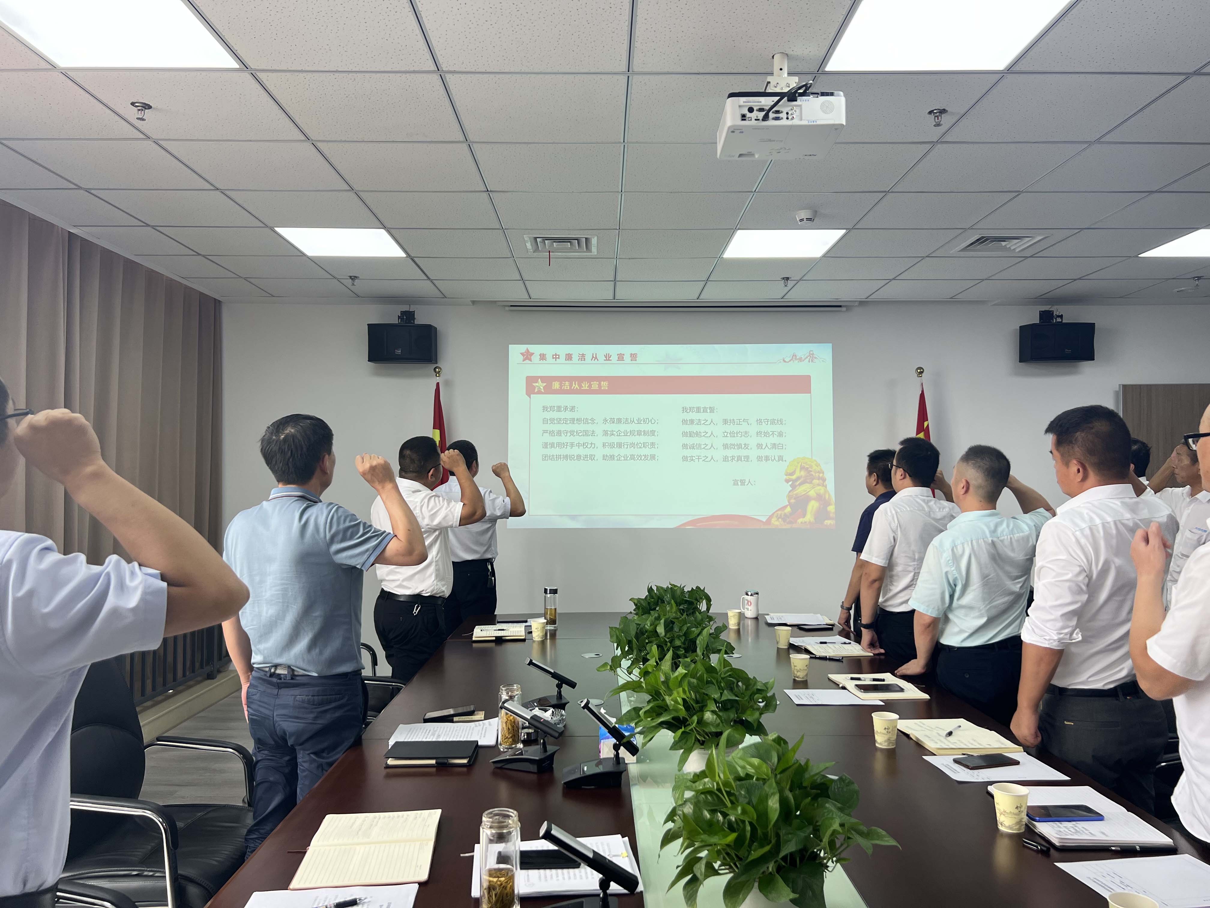 會(huì)議傳達(dá)學(xué)習(xí)了習(xí)近平總書記關(guān)于從嚴(yán)治黨的重要論述(摘選),開展了集體廉潔從業(yè)宣誓,公司黨總支書記、執(zhí)行董事、總經(jīng)理何愛良對(duì)大家進(jìn)行了集體廉政談話。