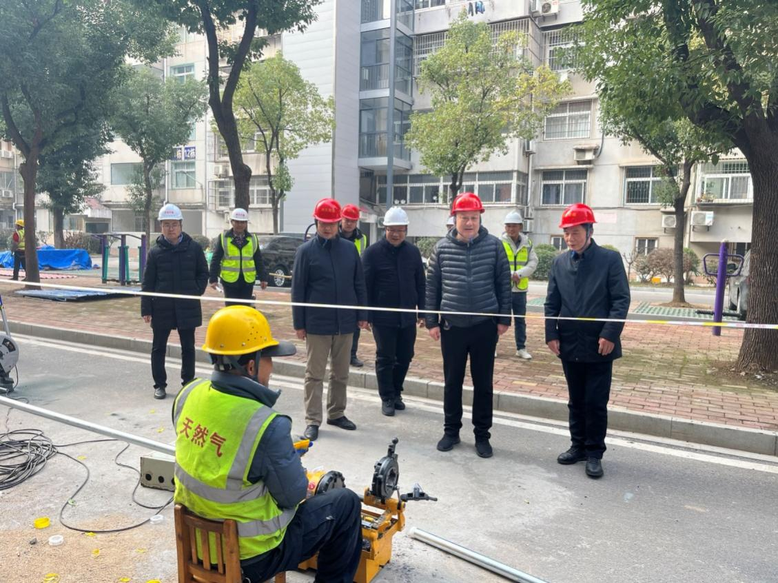 檢查組一行首先來到湖北登超建筑工程公司位于新港大道的師院宿舍區(qū)老舊管網(wǎng)改造工程施工現(xiàn)場,詳細(xì)了解燃?xì)獍踩U洗胧┞鋵崱⒆鳂I(yè)人員防護(hù)、應(yīng)急物資儲備等有關(guān)情況。